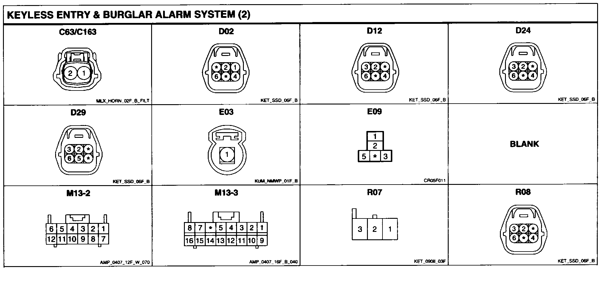 Keyless Entry & Burglar Alarm System Connector Pin Outs:
