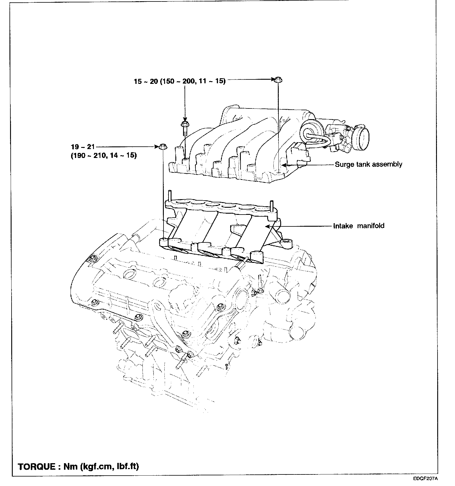 Tightening torque 19 - 21 Nm (190 - 210 kgf-cm, 14 - 15 ft. lbs.)