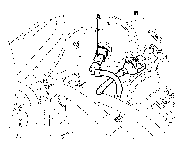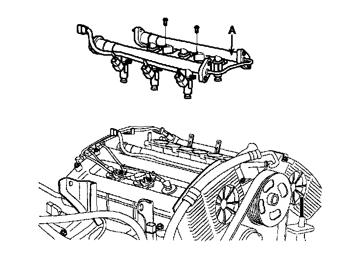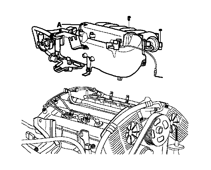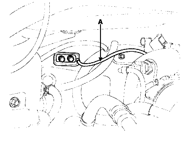 12) Disconnect the ground cable (A) from the surge tank assembly.