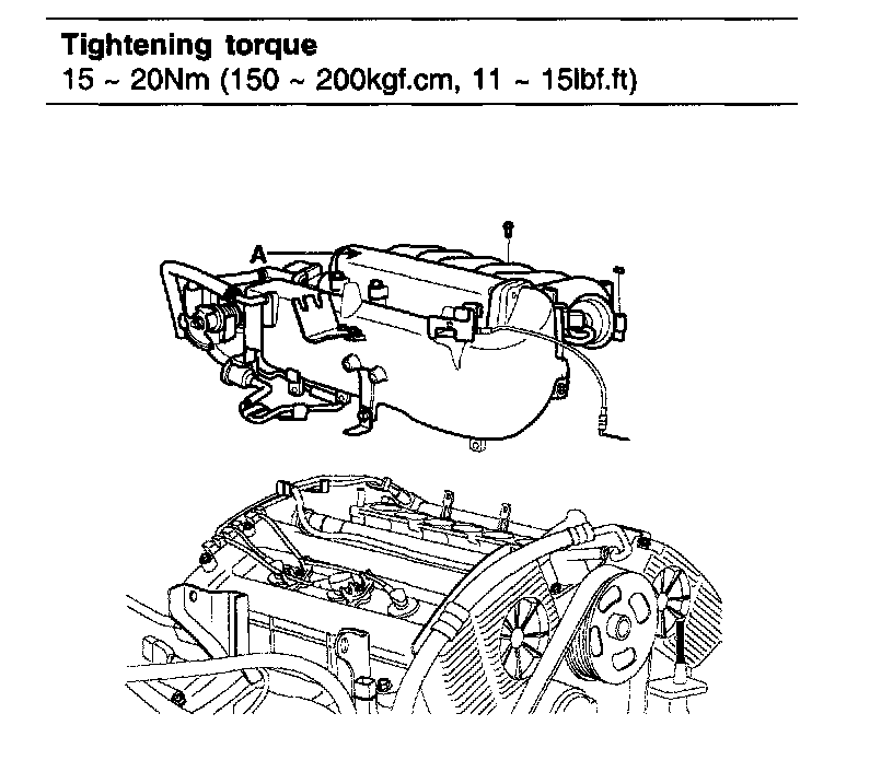 Tightening torque 15 - 20 Nm (150 - 200 kgf-cm, 11 - 15 ft. lbs.)