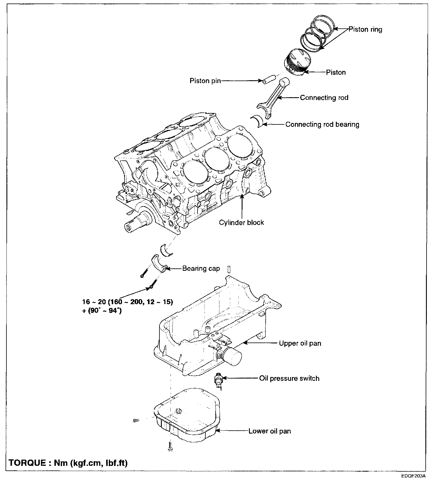 Tightening torque 16 - 20Nm (160 - 200 kgf-cm, 12 - 15 ft. lbs.) + 90°