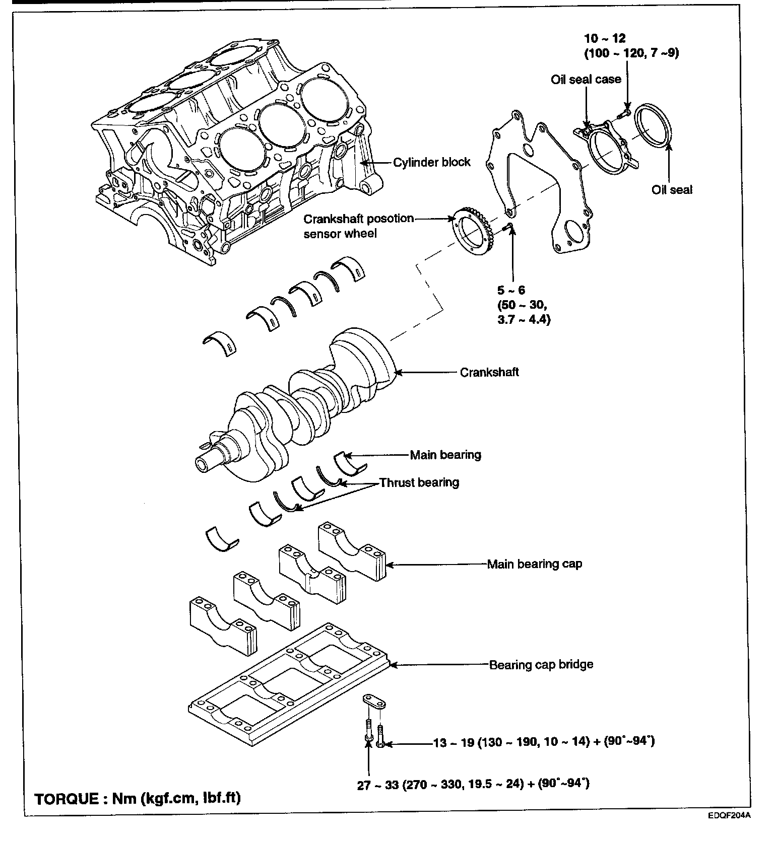3) Retighten the bearing cap bolts by 90° - 94° in the numerical order shown.