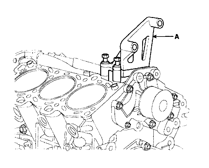 8. Remove the power steering pump bracket (A).