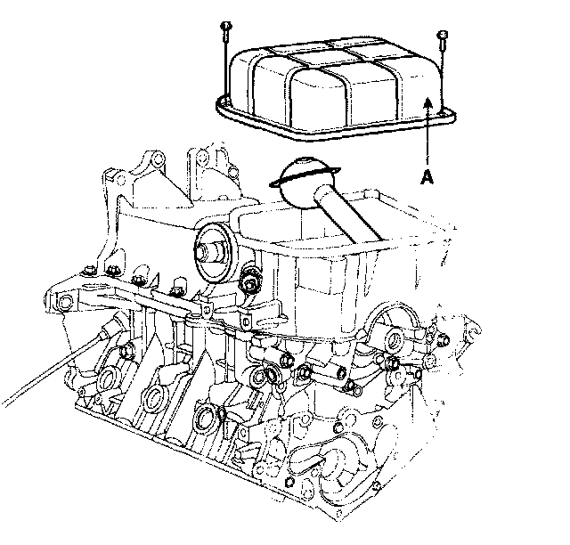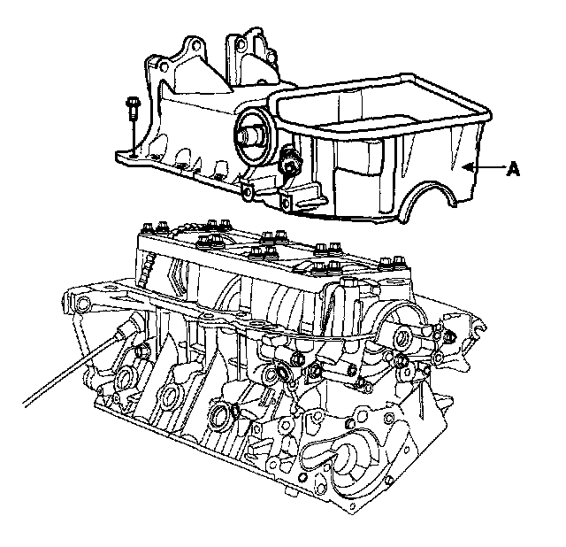 13. Remove the upper oil pan (A).