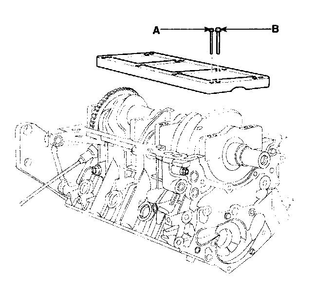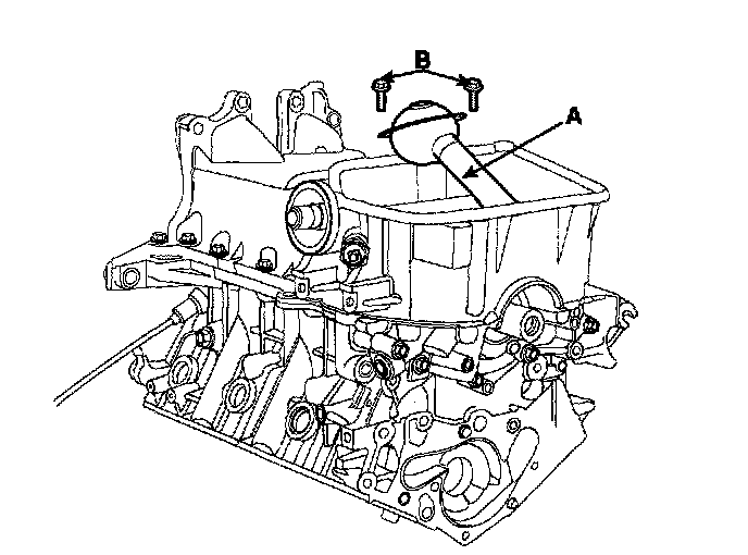 Remove the 2 bolts (B), oil screen (A) and gasket.