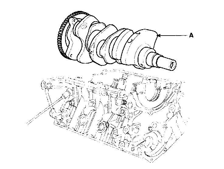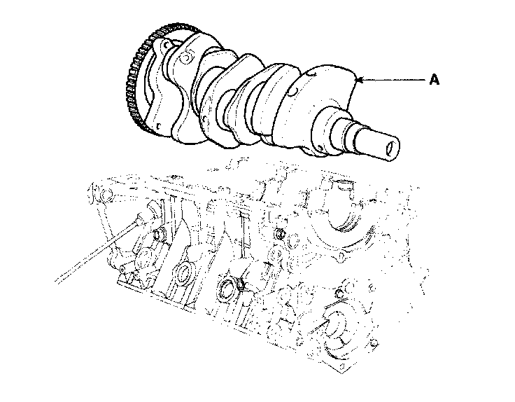 21. Lift the crankshaft (A) out of the engine, being careful not to damage journals.