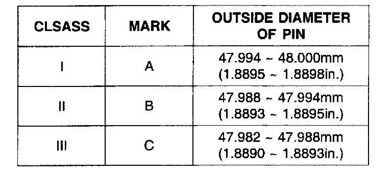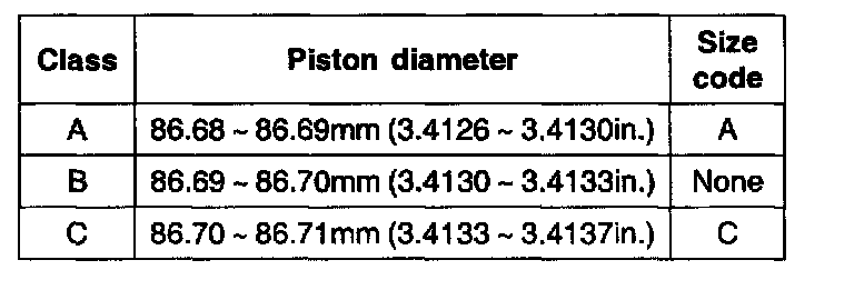 Piston pin diameter 21.001 - 21.007 mm (0.8268 - 0.8270 inch)