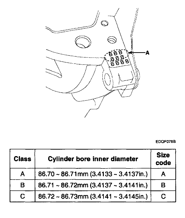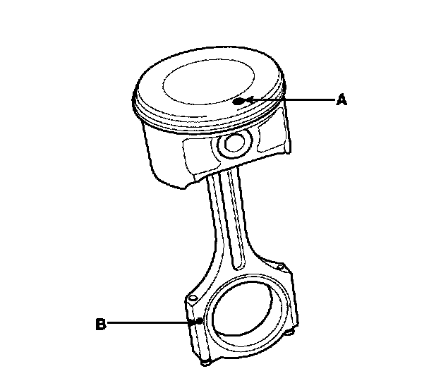 2) The piston front mark (A) and the connecting rod front mark (B) must face the timing belt side of the engine.