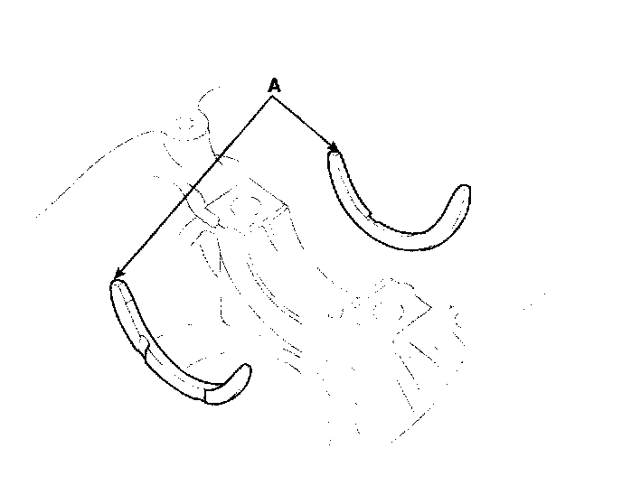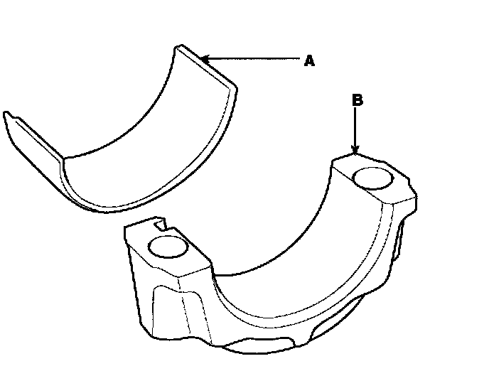 2) Align the bearing claw with the claw groove of the main bearing cap (A), and push in the 4 lower bearings (B).