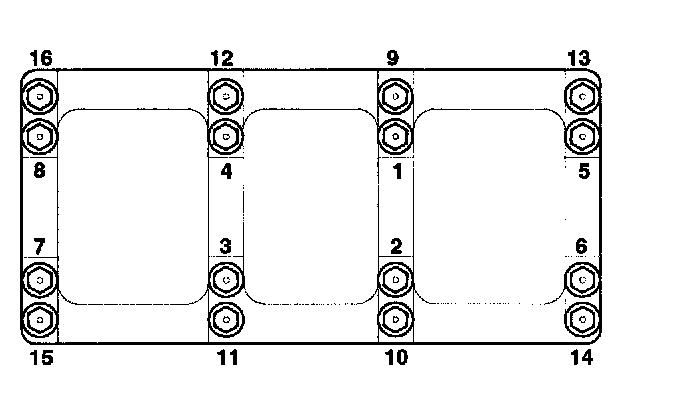 2) Install and uniformly tighten the 16 bearing cap bolts, in several passes, in the sequence shown.