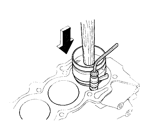 2) Install the ring compressor, check that the bearing is securely in place, then position the piston in the cylinder, and tap it in using the wooden handle of a hammer.