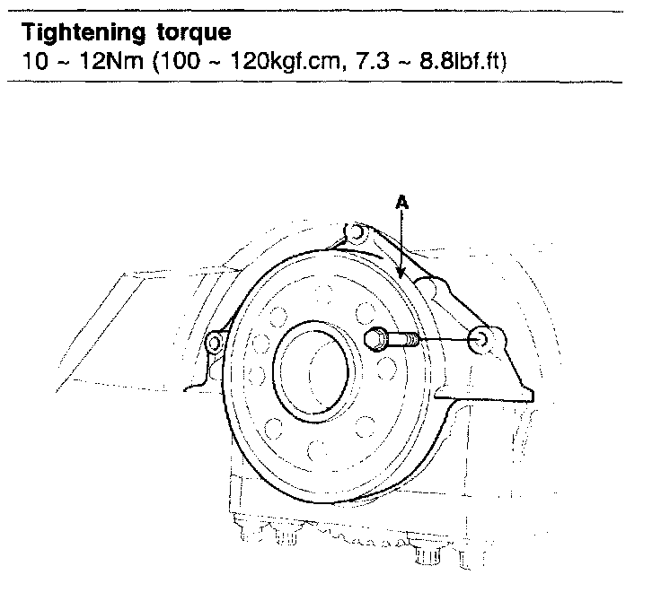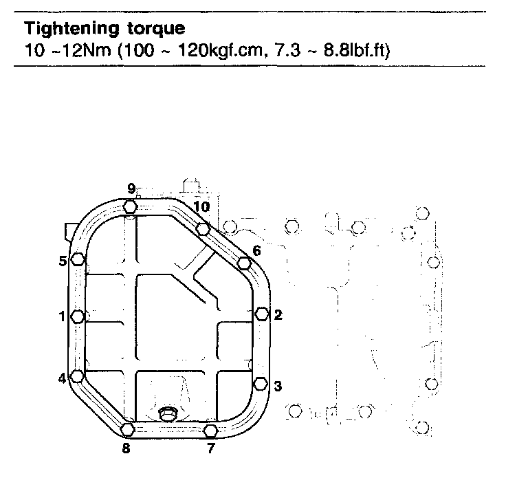 Tightening torque 10 - 12 Nm (100 - 120 kgf-cm, 7.3 - 8.8 ft. lbs.)