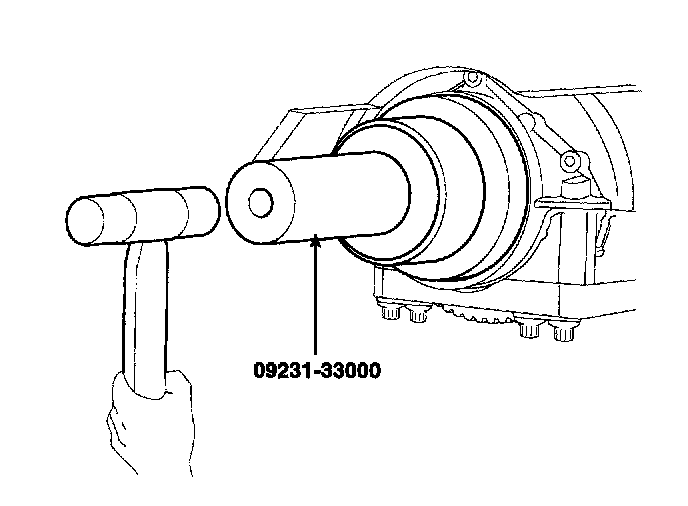 2) Using SST (09231-33000) and a hammer, tap in the oil seal until its surface is flush with the rear oil seal retainer edge.