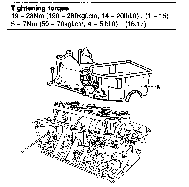 2) Install the oil pan (A) with the 17bolts.
