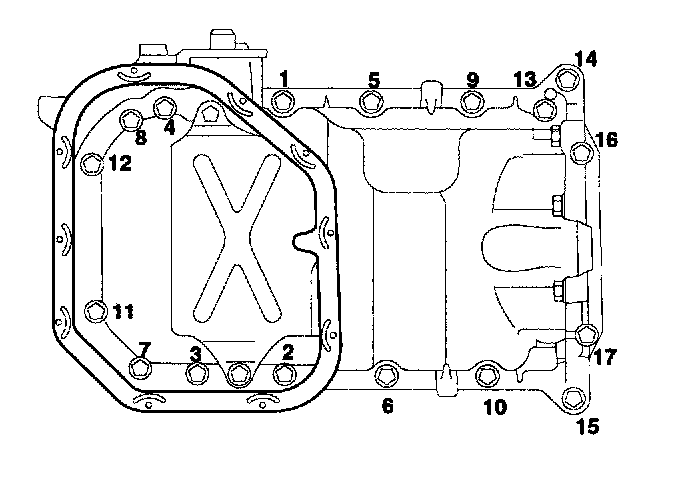 2) Install the lower oil pan 10 bolts.