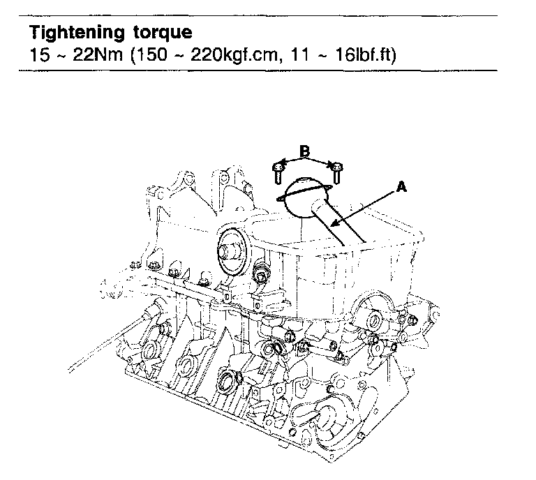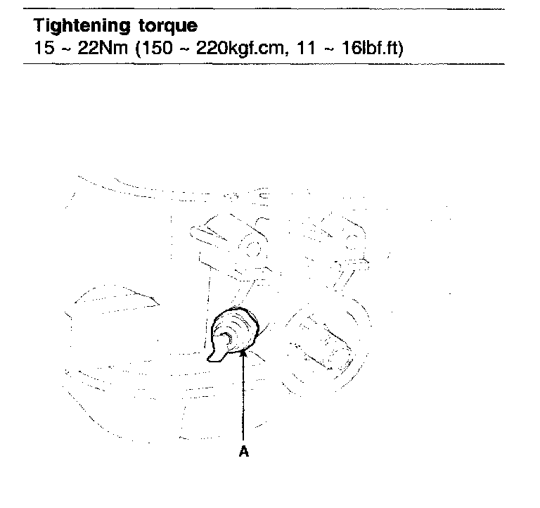 Tightening torque 15 - 22 Nm (150 - 220 kgf-cm, 11 - 16 ft. lbs.)