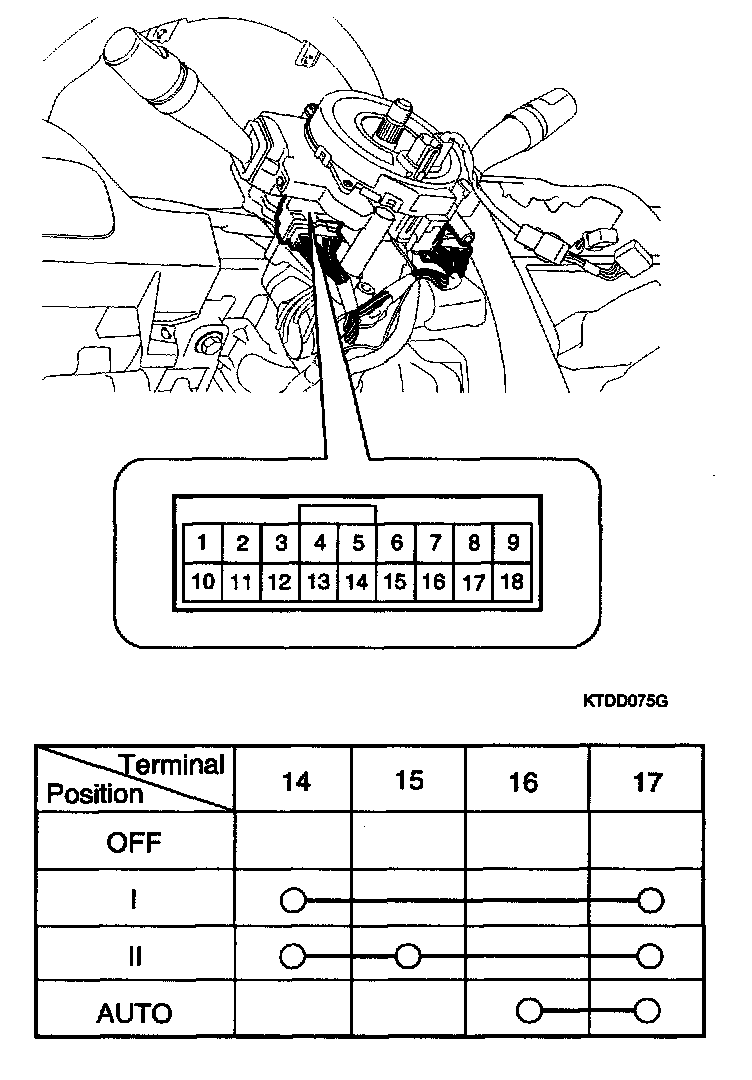 Operate the auto light switch, then check for continuity between terminals of 18P multi-function switch connector.