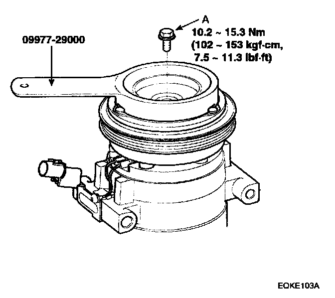 DISASSEMBLY1. Remove the center bolt (A) while holding the pressure plate with a commercially available pressure plate bolt remover; Special tool number 09977-29000.