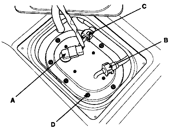 5. Remove the fuel feed hose (B) and suction hose (C).