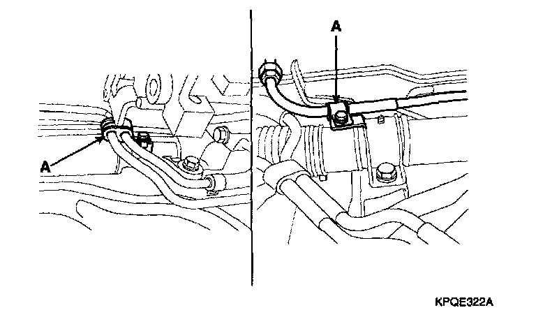7. Fix the power steering pressure tube and return tube mounting clamp (A) with a bolt.