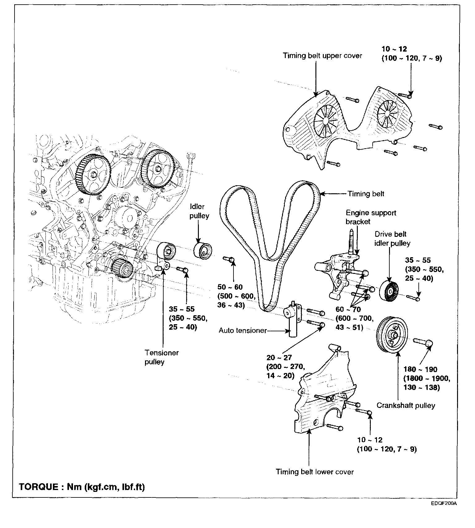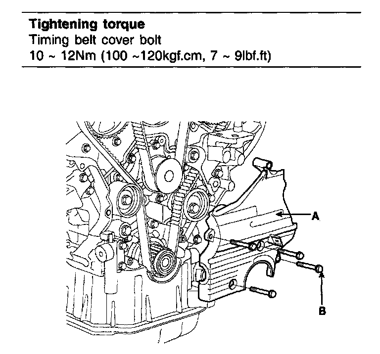 Timing belt cover bolt 10 - 12Nm (100 - 120 kgf-cm, 7 - 9 ft. lbs.)