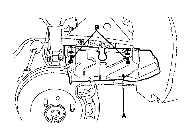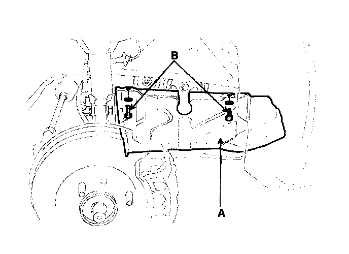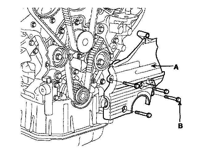 11. Install the timing belt lower cover (A) with 4 bolts (B).