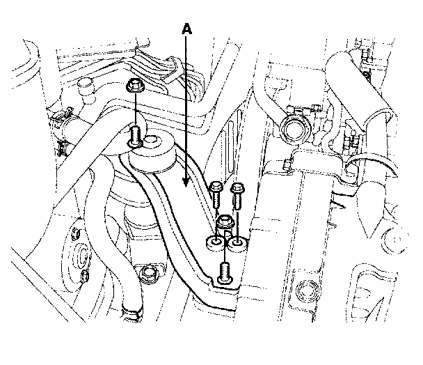 2) Remove the 2 bolts, 2 nuts and engine mount bracket (A).
