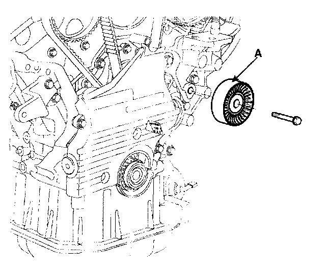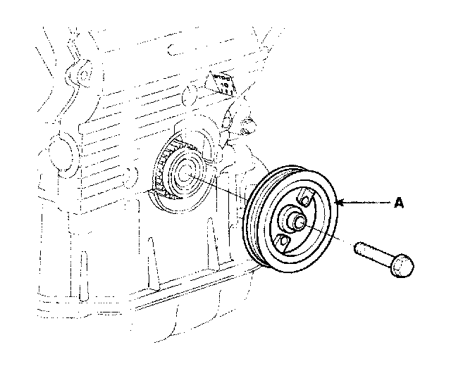 9. Remove the crankshaft pulley bolt and crankshaft pulley (A).