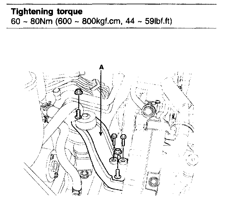 Tightening torque 60 - 80 Nm (600 - 800 kgf, 44 - 59 ft. lbs.)
