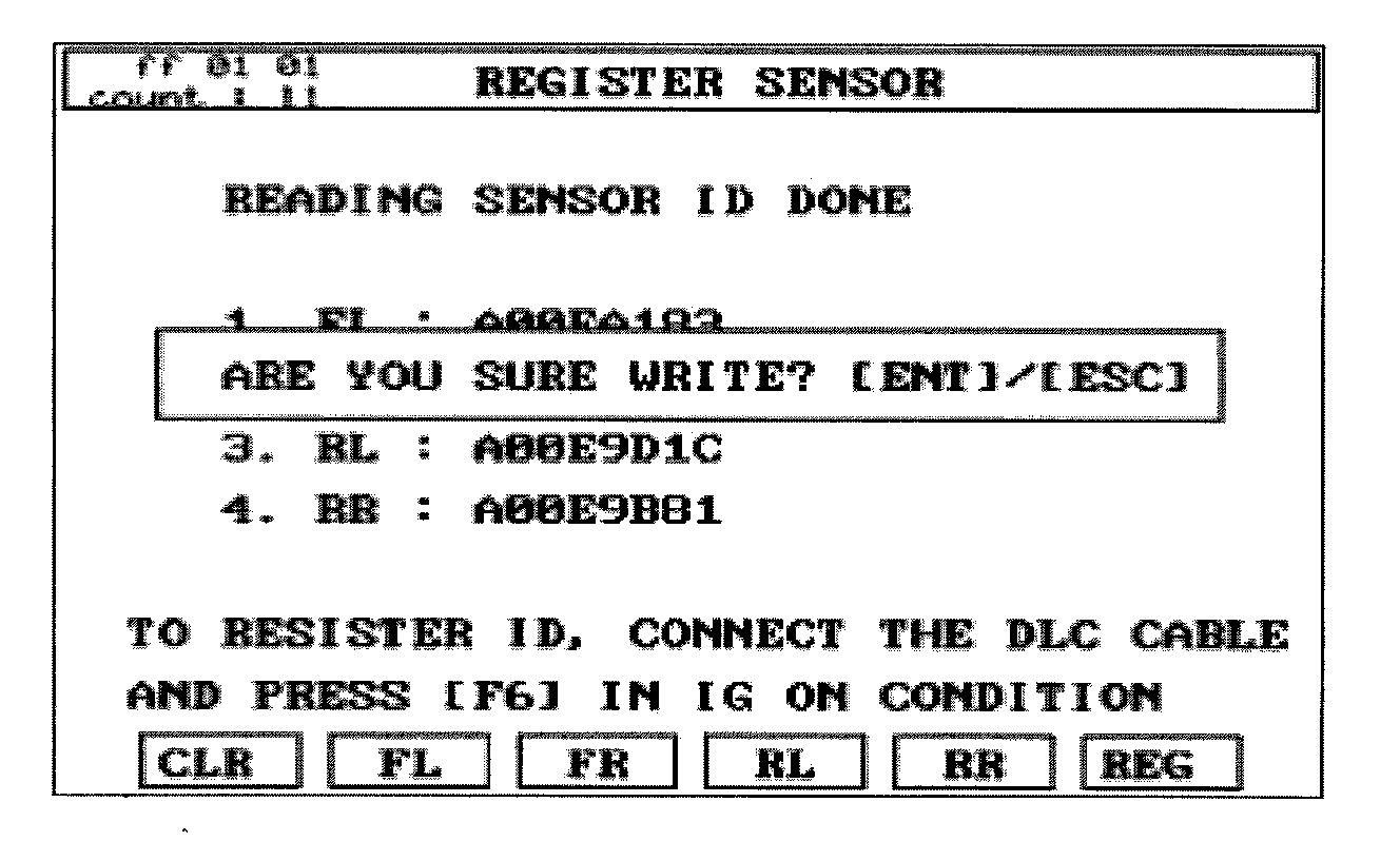 2. Read the four sensor's ids starting with sensor 1(1 normally front left, 2 front right, 3 rear left, 4 rear right).