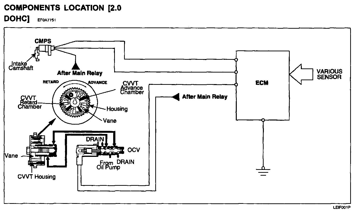 CONTINUOUS VARIABLE VALVE TIMINGComponent Location [2.0 DOHC]: