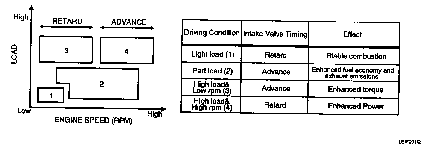 Cam angle is advanced to obtain the EGR effect and reduce pumping loss. The intake valve is closed quickly to reduce the entry of the air/fuel mixture into the intake port and improve the changing effect.