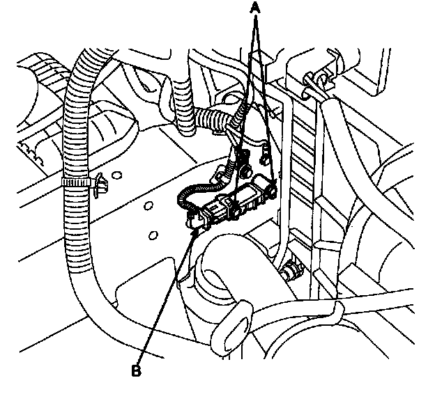 4. Disconnect the SRS harness connector (A) from the front impact sensor (B).