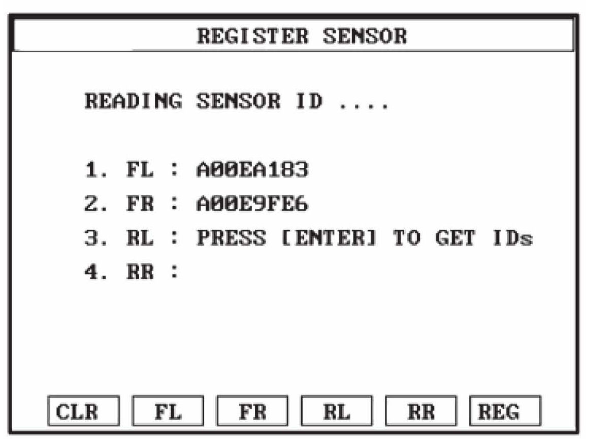 2. Read the four sensor's IDs starting with sensor 14. Register the four sensor's IDs to the receiver.