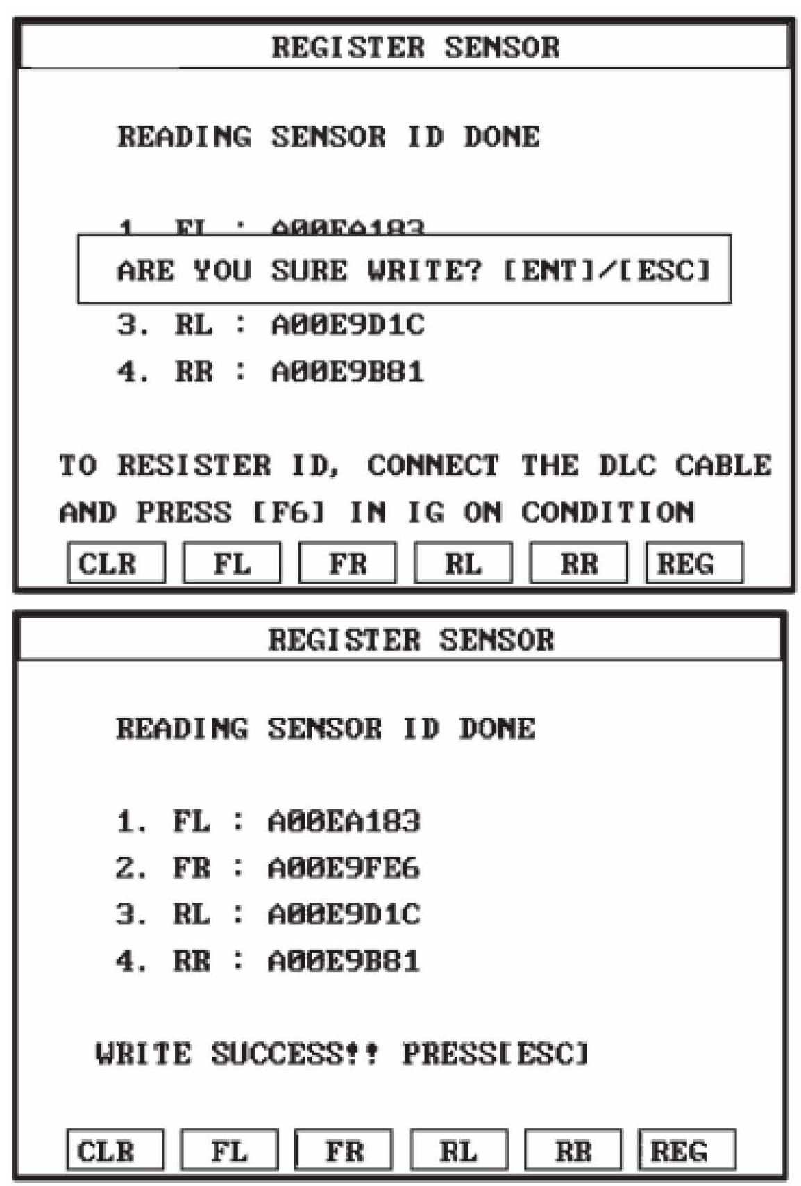 ^ On successful completion, all 4 road wheel sensor ID's are programmed into the system's memory for monitoring.