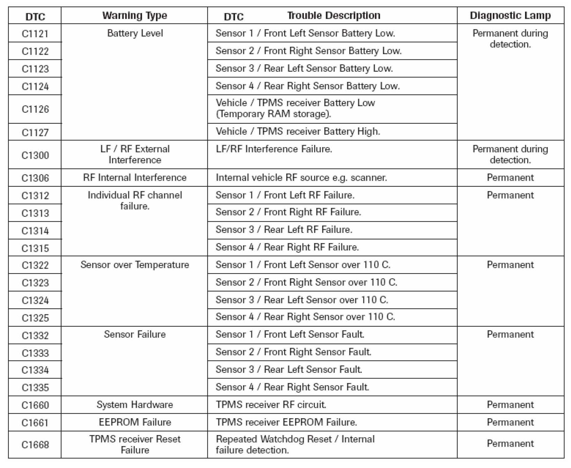 (TPMS) will be available on the 2006 Tucson. The system uses sensors located in each of the tire rims. They are connected to the base of the tire inflation stems. The four Tire Pressure Sensors monitor changes in tire inflation, pressure and temperature. The sensor information is sent to the TPMS Receiver, which in turn illuminates the TPMS indicator lamp if conditions warrant. The TPMS Receiver also monitors the sensors for malfunction. Several DTCs relate to Tire Pressure monitoring. They are listed in the chart.