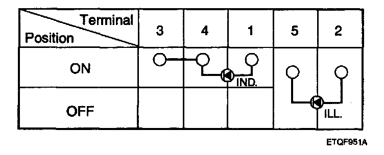 3. Check for continuity between terminals while operating the defogger switch.