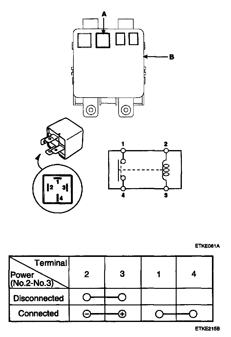 3. There should be no continuity between the No.1 and No.4 terminals when power is disconnected.