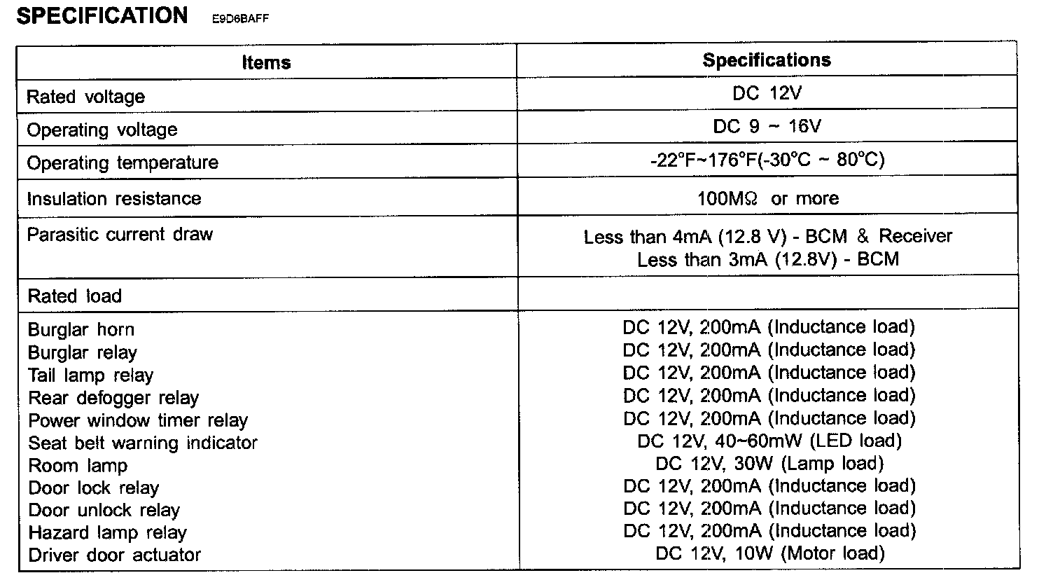 Body Control Systems: Specifications