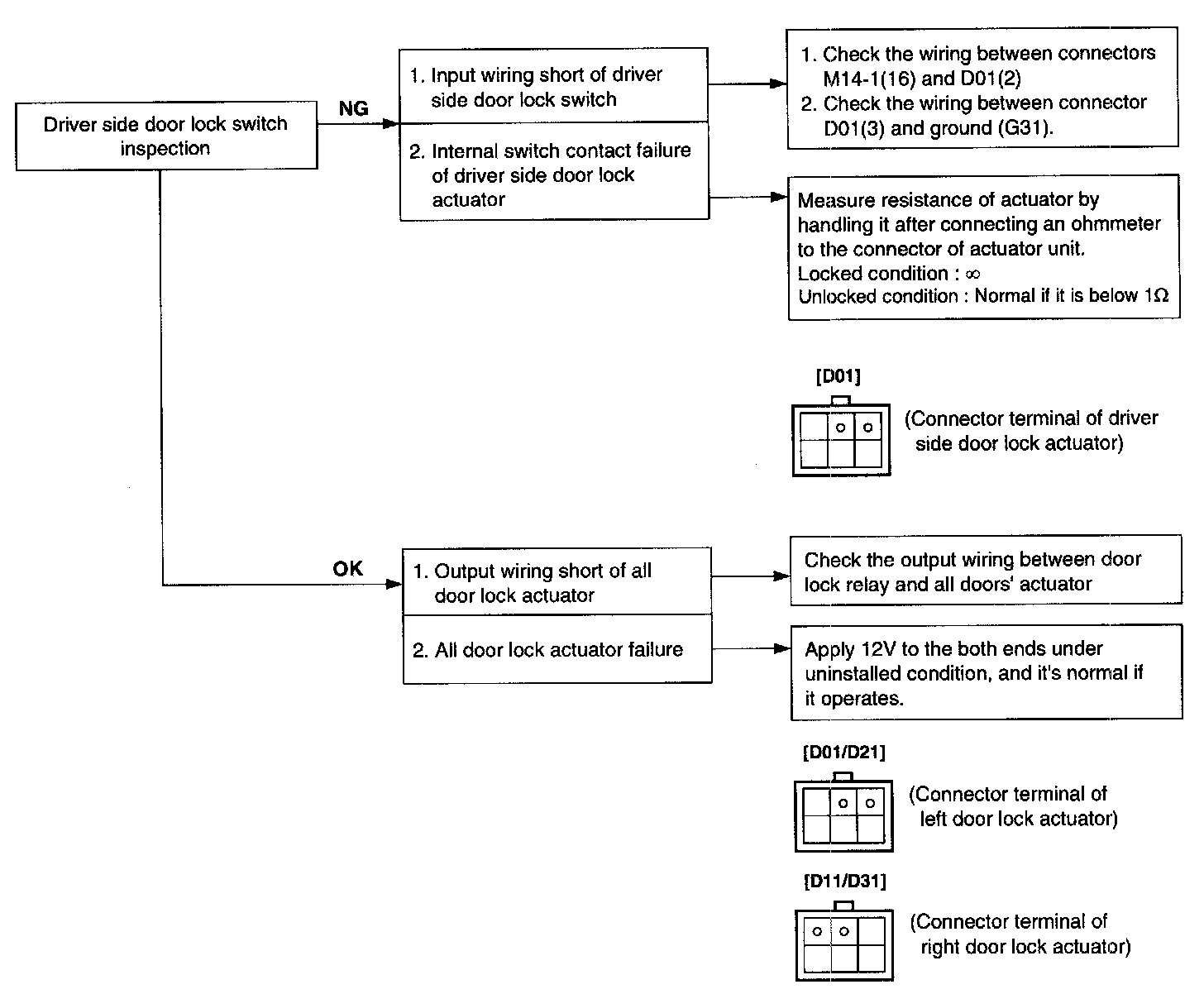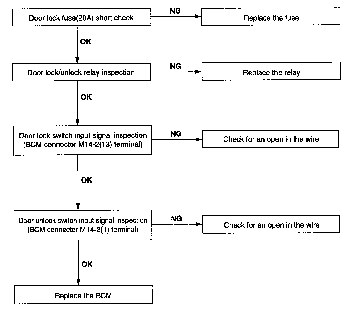 1. Lock function works but unlock function does not work. -> Since door unlock relay is malfunction, replace the door unlock relay.