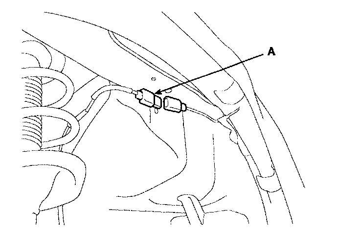 4. Disconnect the front wheel speed sensor connector (A), then remove the front wheel speed sensor.
