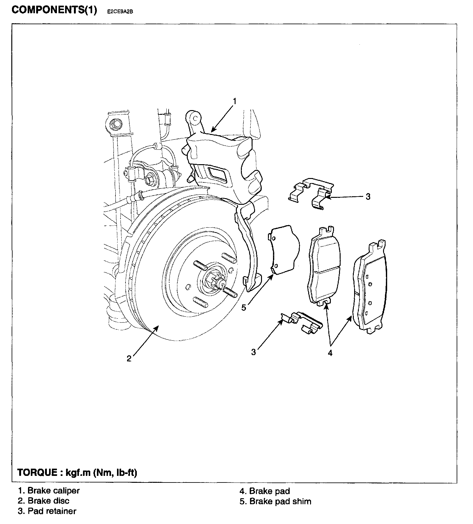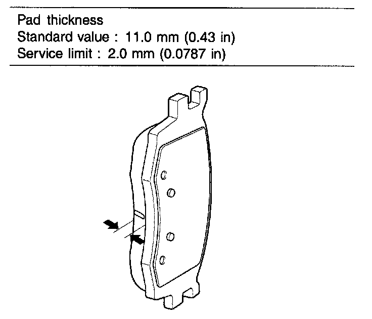 1. Check the pad wear. Measure the pad thickness. replace it if it is less than the specified value.