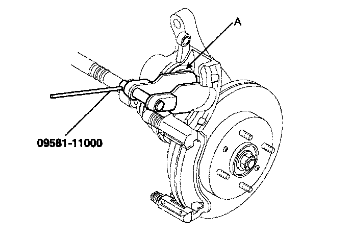 6. If caliper assembly(A) was removed, install the brake hose to the caliper.