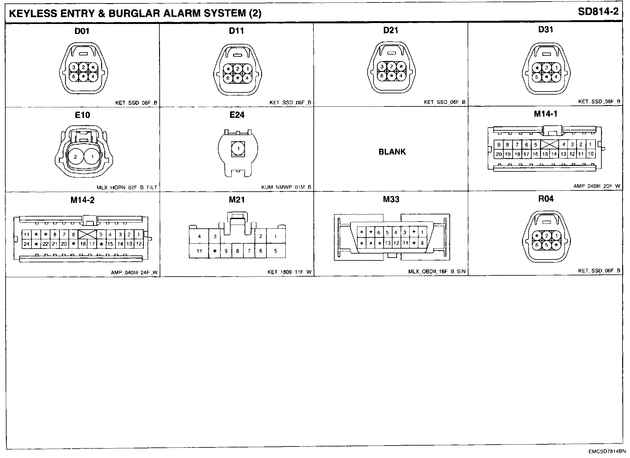 Keyless Entry & Burglar Alarm System Connector Pin Outs: