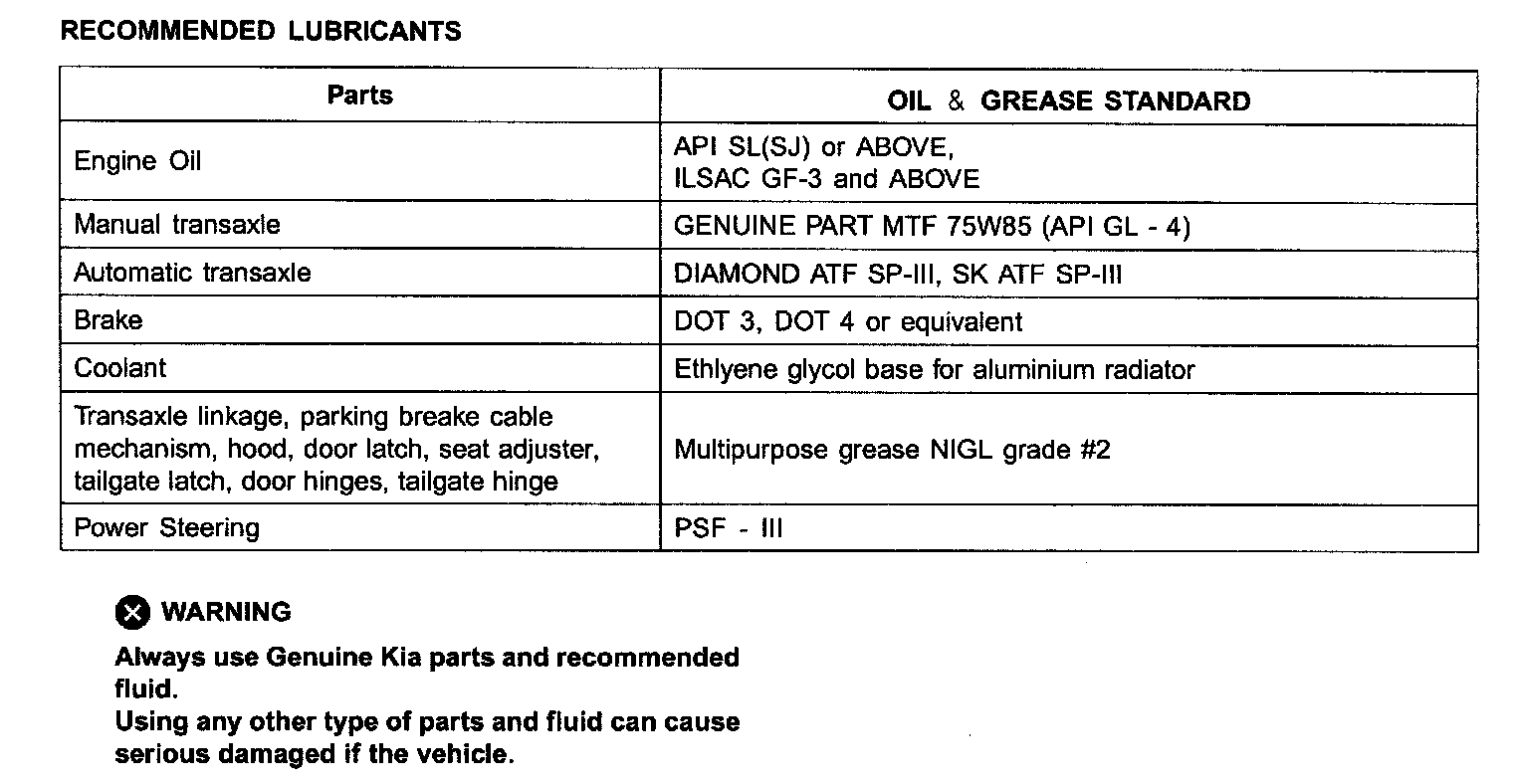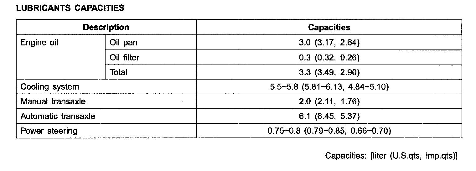 Lubricants Capacities:
