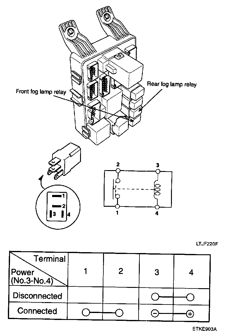 2. There should be no continuity between the No.1 and No.4 terminals when power is disconnected.