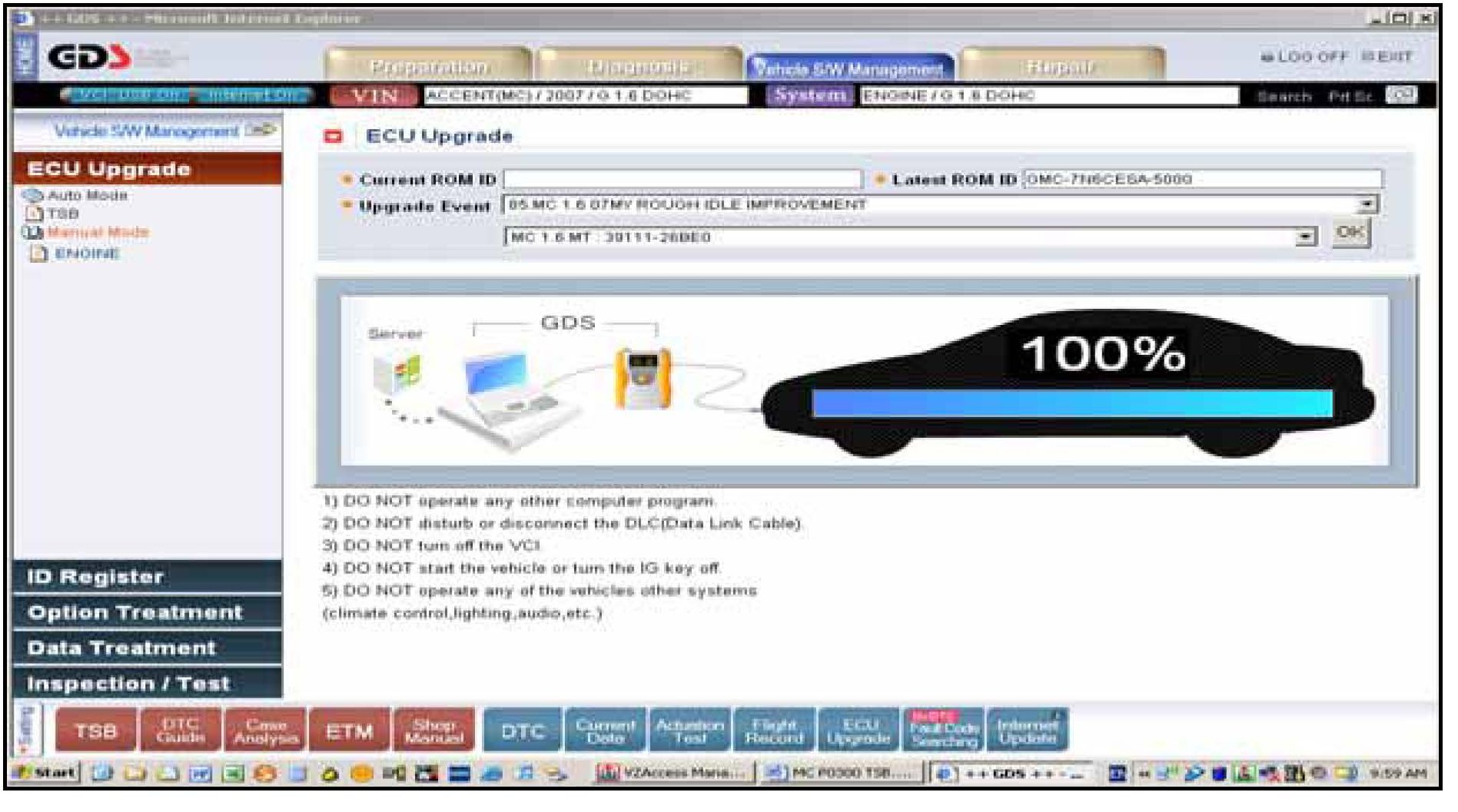 3. Turn on the VCI and GDS laptop, and then perform reprogramming in accordance with the instructions of the below procedure:
