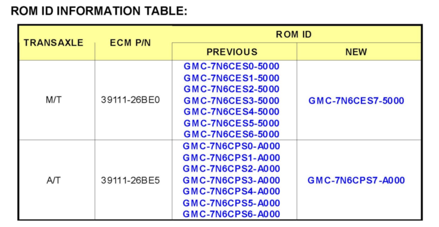 NOTE: To verify the vehicle is affected, be sure to check the version of the vehicle's control unit ROM ID with reference to the ROM ID Information Table mentioned above before attempting to update the control unit software.