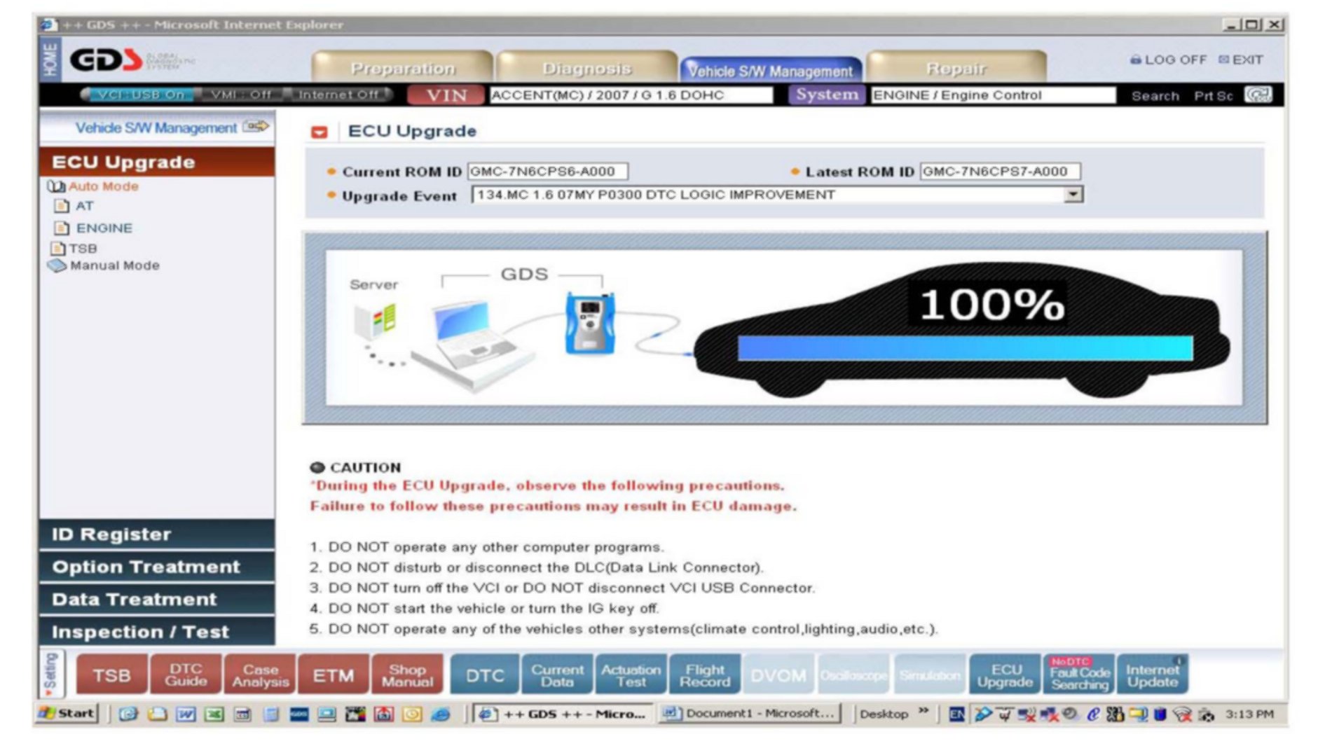 3. Be careful not to disconnect any cables connected to the vehicle or scan tool during update.
