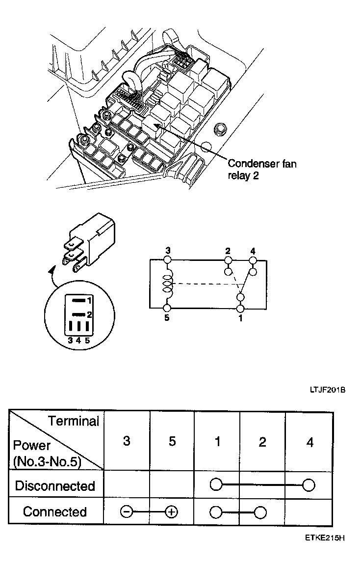 1. There should be continuity between the No.1 and No.2 terminals when power and ground are connected to the No.3 and No.5 terminals.